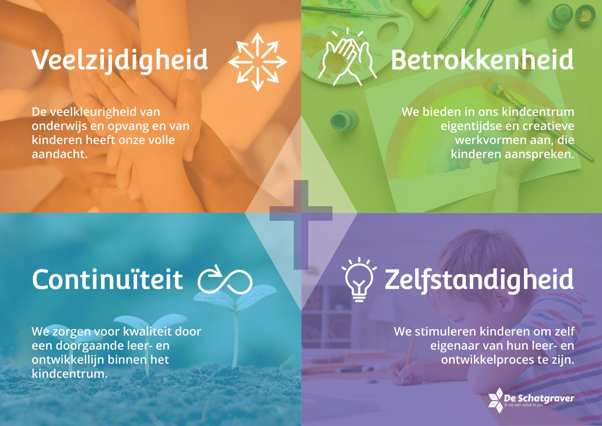 Om aan de verschillen tussen kinderen tegemoet te komen, bieden we gevarieerde en betekenisvolle werkvormen aan. Zo willen wij de betrokkenheid van kinderen waarborgen. Wij zorgen voor een doorgaande lijn van kwalitatief goed onderwijs en opvang en volgen de ontwikkeling van kinderen nauwkeurig. Door kinderen te stimuleren eigenaar te zijn van hun leer- en ontwikkelproces, willen wij hun zelfstandigheid stimuleren.